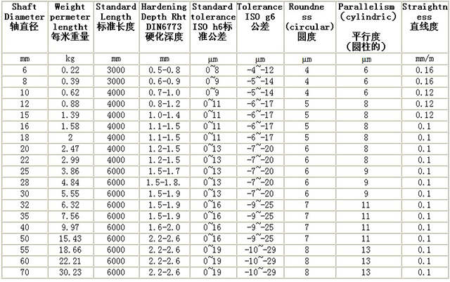 根據(jù)要求,我們可以提供不在列表中直徑的特殊長(zhǎng)度和公差尺寸的軸。
